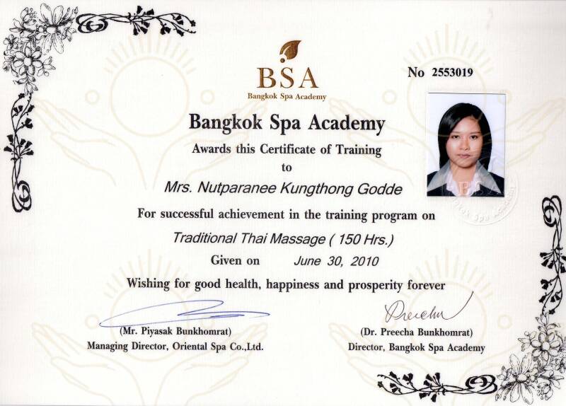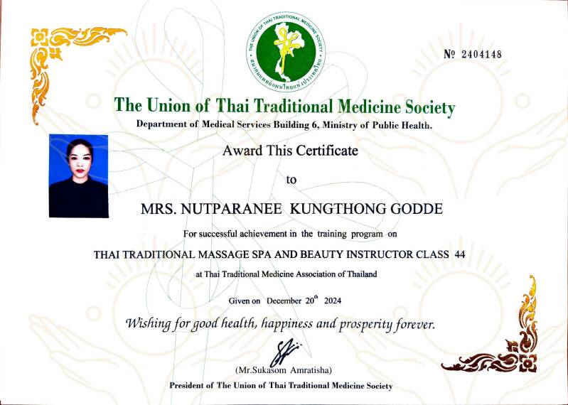 Je suis Thaïlandaise, née à Bangkok et installée en France depuis 2010. Mon prénom français est Chloé et mon prénom thaï est Nutparanee. J'ai quinze années d'expérience dans différents instituts de massage bien-être, en France et en Suisse. Je suis diplômée de plusieurs écoles de massage, parmi lesquelles la prestigieuse école de massages thaïlandais du Wat Po. Influencée par mes origines thaïlandaises, je puise mon inspiration dans la philosophie bouddhiste pour exercer mon métier de praticienne en massage bien-être. Chaque soin est un véritable rituel, où le respect, la sérénité et la bienveillance guident mes gestes. L’atmosphère que je crée, empreinte de calme et d’authenticité asiatique, est essentielle pour offrir un moment de détente profonde, où le corps et l’esprit peuvent se recentrer en harmonie.